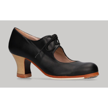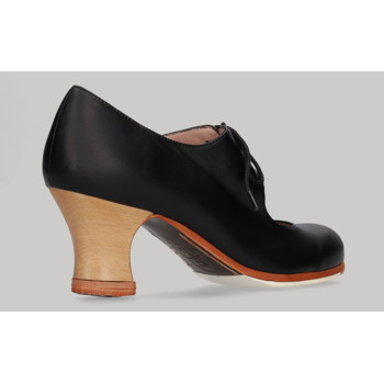 Zapato de baile flamenco profesional en piel negro con cordones.
