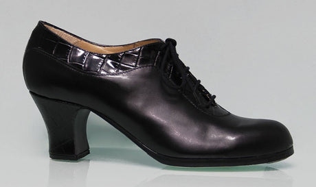Zapato de Baile Flamenco Profesional Combinado Ante Negro y Piel Fantasía Serpiente