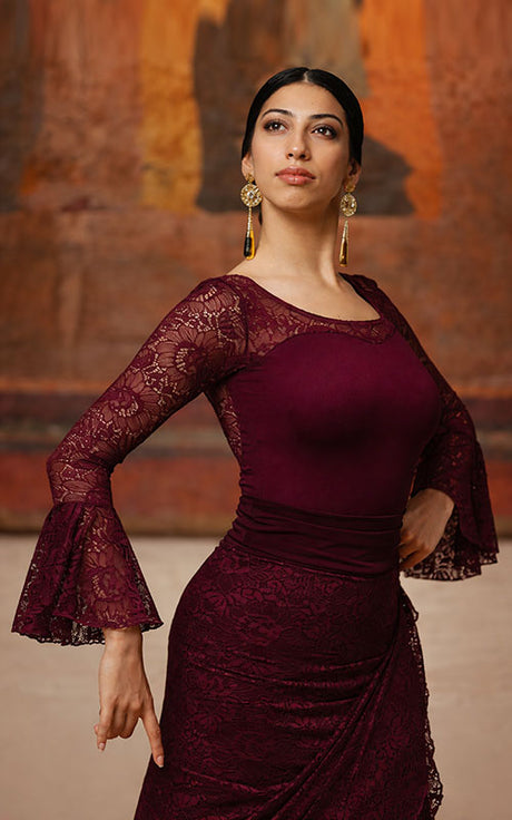 Top de tirantes cortos negro con escote y volante con chorrera rojo con lunares
