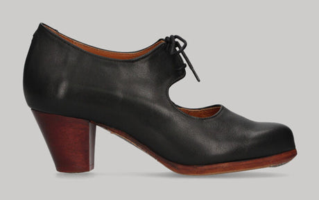Zapato de baile flamenco profesional combinado en piel y ante negro con cordones