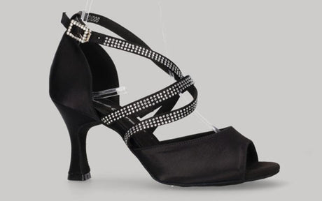 Zapato para Baile de Salón de Ante Negro con Pedrería de Cristal en Tiras y Empeine