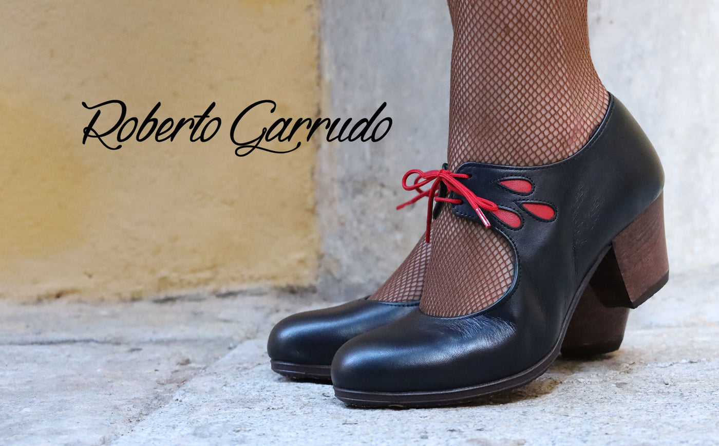 Professional flamenco dance shoe in bottle green leather and fantasy with laces