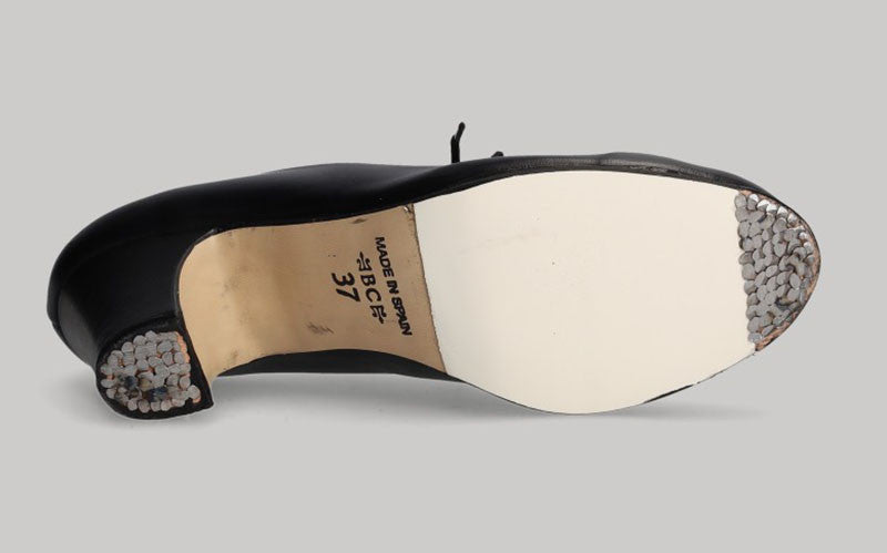Semi-professional black leather flamenco dance shoe with laces. BEGOÑA CERVERA.