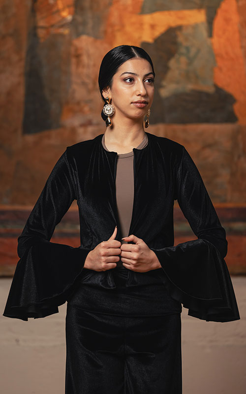 Torera de terciopelo negro entallada con costadillos.