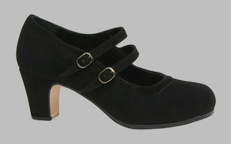 Chaussure de flamenco professionnelle combinée en cuir noir et fantaisie avec lacets