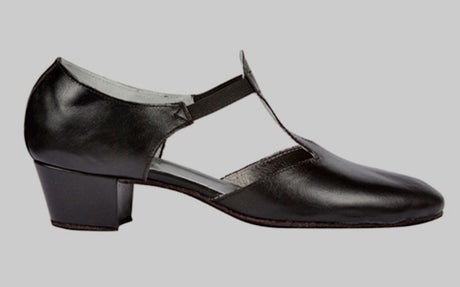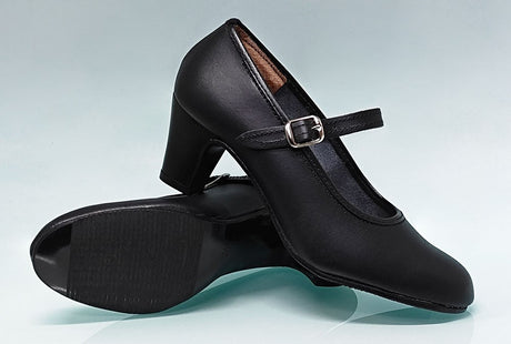 Chaussure de danse semi-professionnelle en cuir noir avec boucle et talon cubain