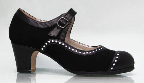 Chaussure de danse flamenco professionnelle en daim noir et fantaisie