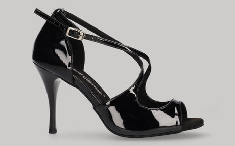 Chaussure de danse de salon et de tango noire avec strass en cristal sur la tige
