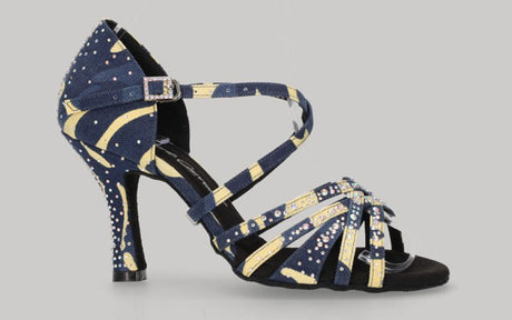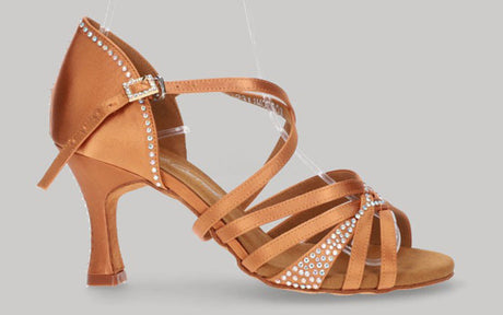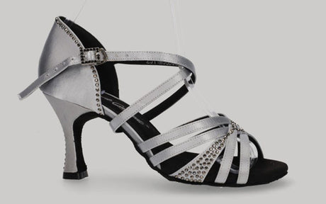 Chaussure de danse de salon argentée avec strass en cristal sur la tige et le talon