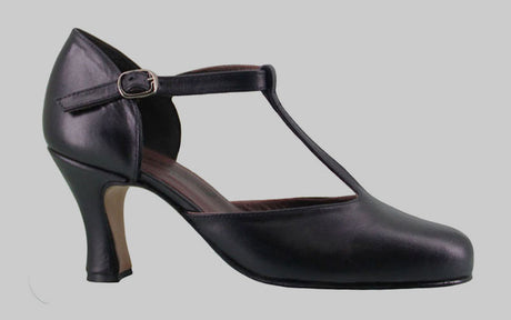Chaussure de danse de salon en cuir noir type Chapín 5 cm.