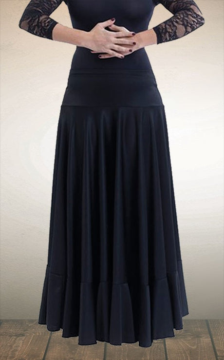 Jupe flamenco noire, ajustée jusqu'à mi-cuisse avec ceinture