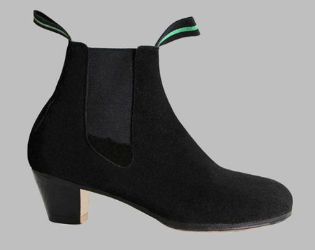 Chaussure de flamenco professionnelle noire à talon bas et ornement sur la tige