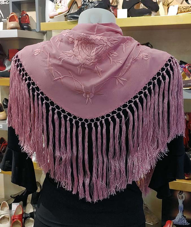 Petit châle en maquilleje brodé de fleurs en maquilleje avec treillis et franges de couleur maquilleje. ROBERTO GARRUDO.