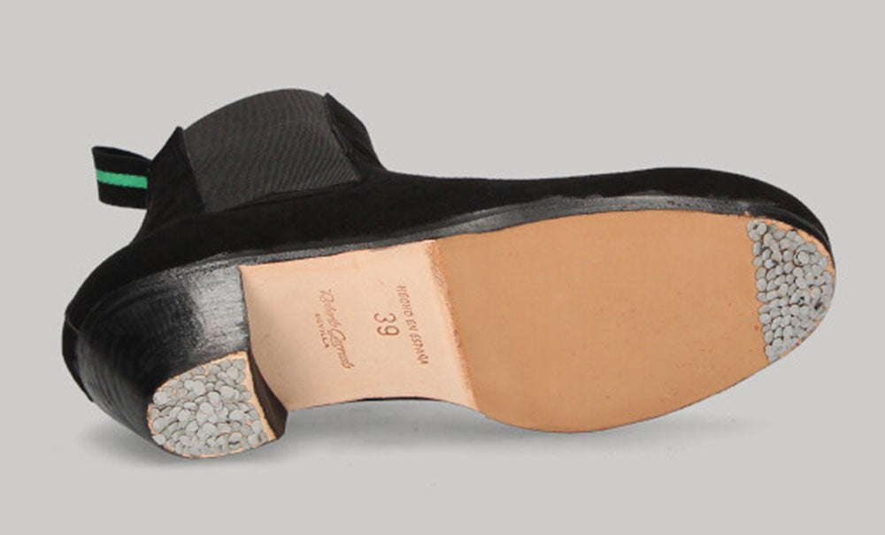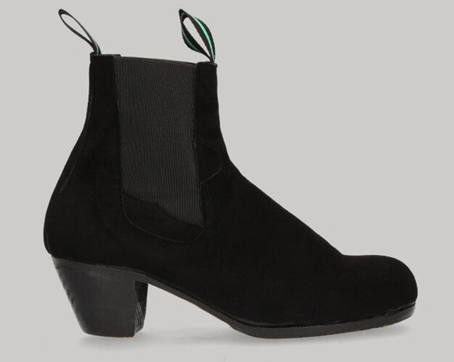 Botte de danse flamenco professionnelle en daim noir pour homme, tailles 35/46. ROBERTO GARRUDO.