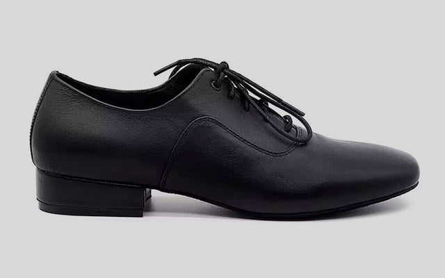 Chaussure de danse latine et de salon à lacets en cuir noir pour homme avec une tige lisse. Idéal pour danser : Bachata, Salsa, Kizomba et Tango. ROBERTO GARRUDO.
