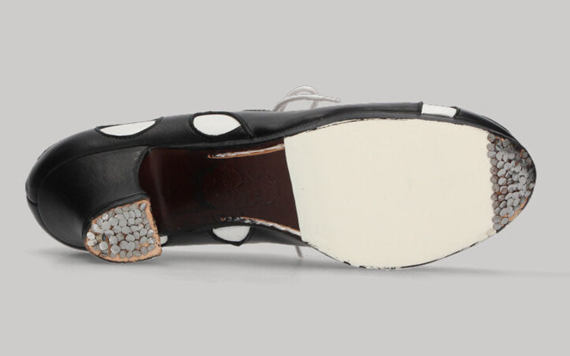 Chaussure de danse flamenco professionnelle en cuir noir et blanc