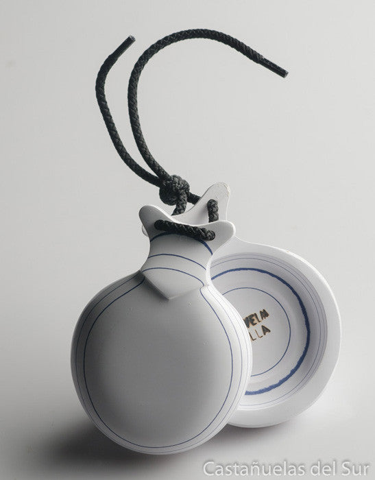 Castagnettes capricho blanches veinées bleues double caisse. CASTAGNETTES DU SUD.