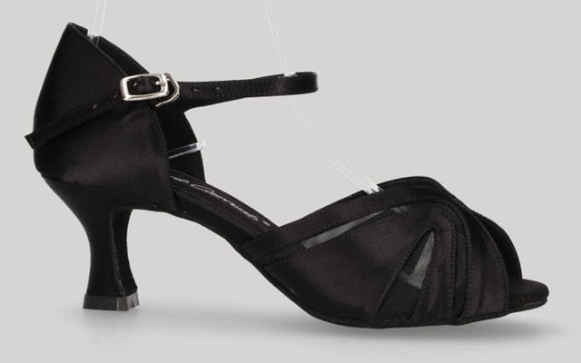 Chaussure de danse latine et de salon en satin noir avec bride à la cheville et fermeture à boucle. ROBERTO GARRUDO. * Kizomba * Tremper * Bachata * Tango