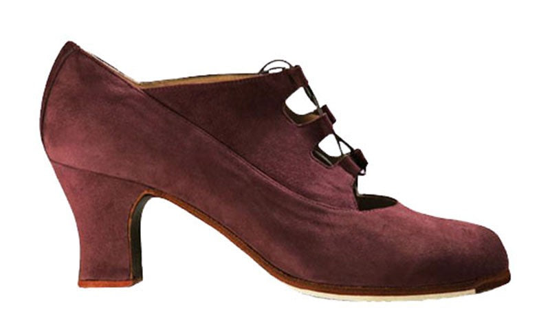 Chaussure de danse flamenco professionnelle en daim bordeaux avec lacets. BEGOÑA CERVERA. Nous fabriquerons ce modèle expressément pour vous, le délai de fabrication sera70-90environ jours. Par conséquent, nous n'accepterons aucun échange ni retour. Avant de préciser la taille, assurez-vous de la choisir correctement. Remarque : Si vous souhaitez modifier les fonctionnalités de ce modèle, veuillez nous en informer en écrivant à :zapatosdebaile@robertogarrudo.comet nous vous ferons un devis sans engagement.