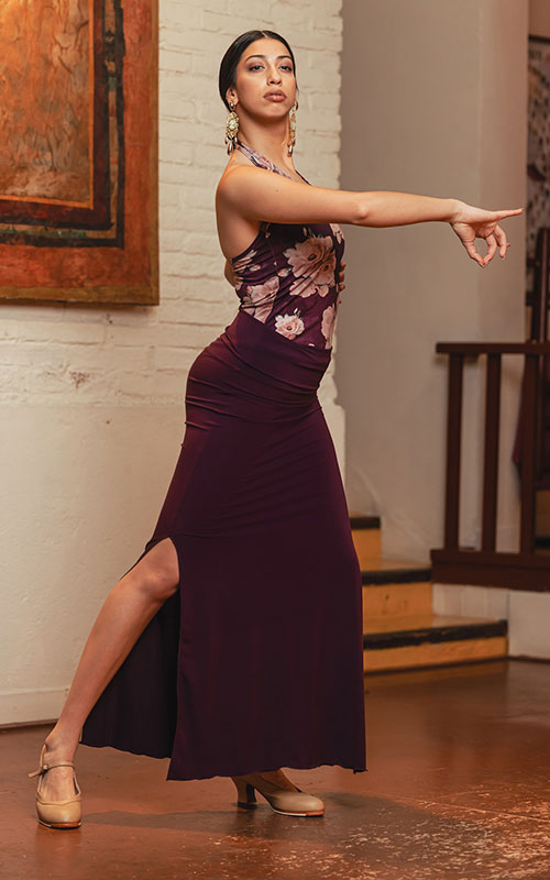 Falda flamenco bangui larga con fajín color burdeos
