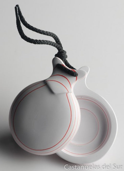 Castañuela Capricho blanco veteado rojo con caja doble.