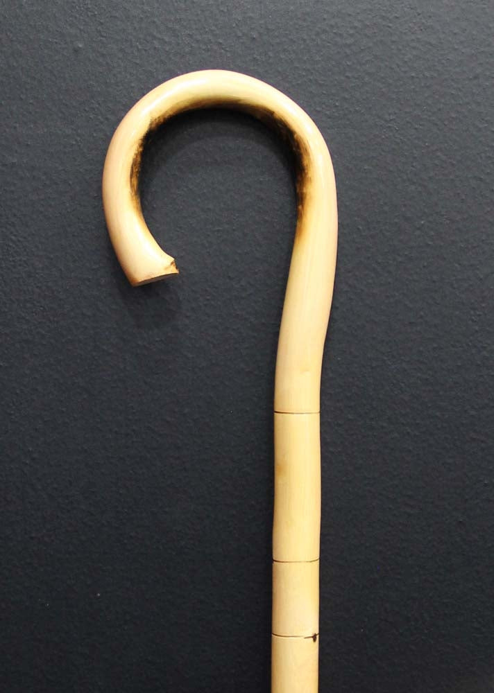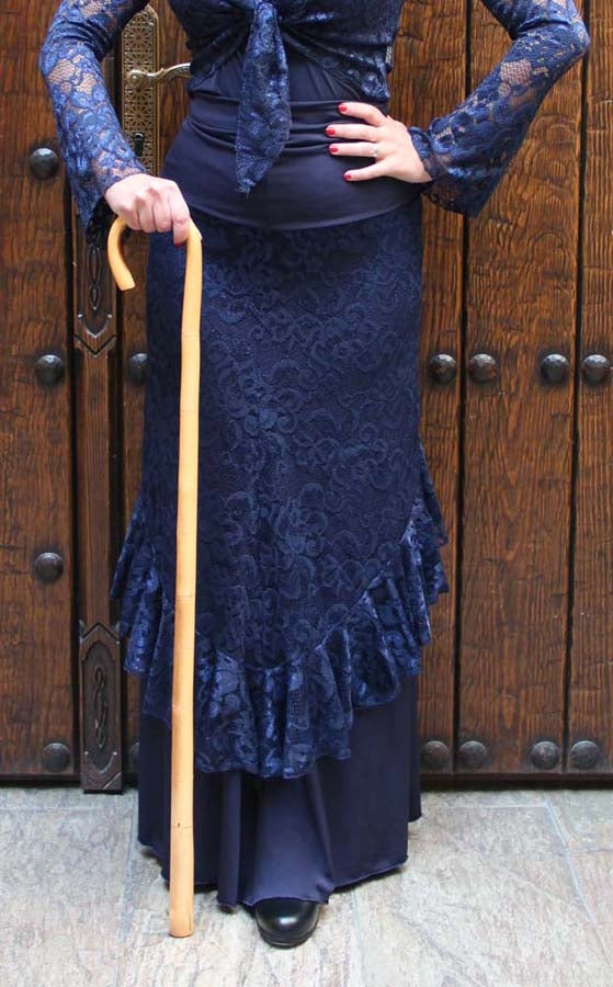 Bastón para bailar flamenco fabricado en madera de almez, color madera barnizado con decoración torneada.