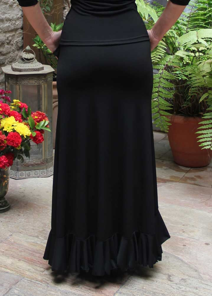Falda Flamenco Valoria Negra con Volante Diagonal e Inferior
