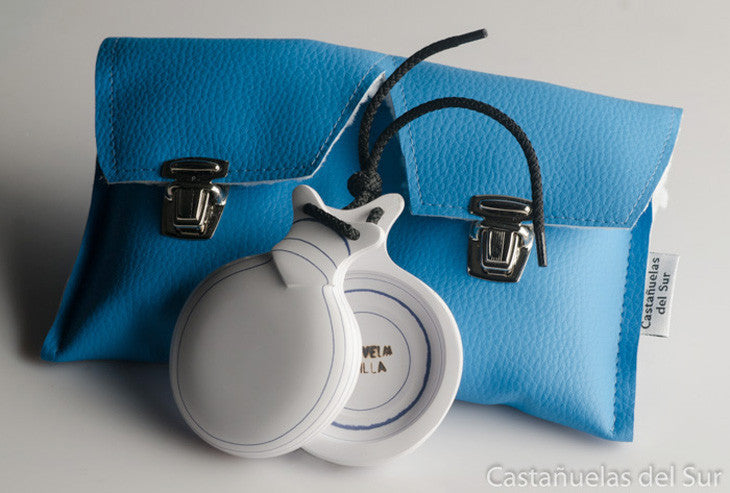 Castañuela capricho blanco veteado azul caja doble. CASTAÑUELAS DEL SUR.