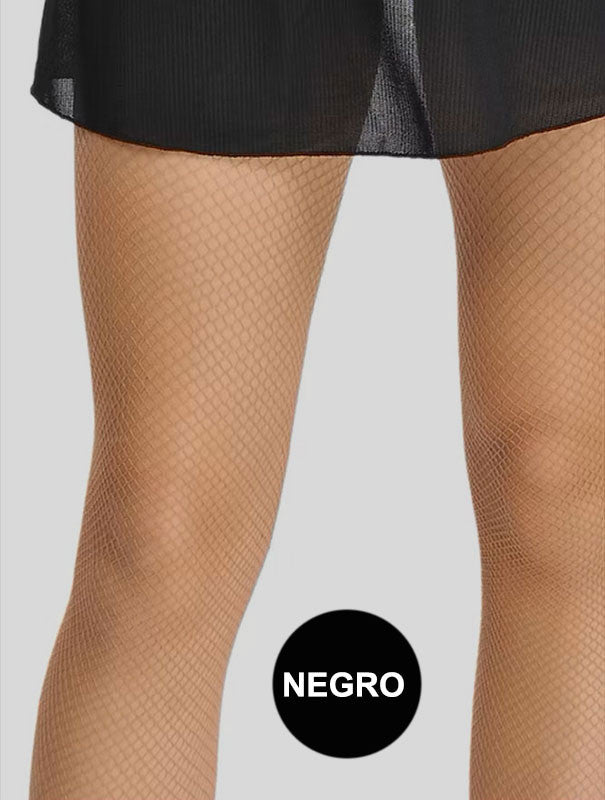 Media elástica básica de red color negro, es una media ligera y tiene una malla de tamaño estándar y se puede practicar cualquier tipo de baile.