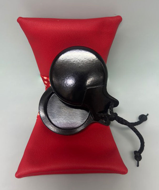 Castañuelas Vela Martínez de iniciación para principiantes modelo Pandero de fibra negra brillo. Funda incluida en color rojo o azul según disponibilidad. FILIGRANA.