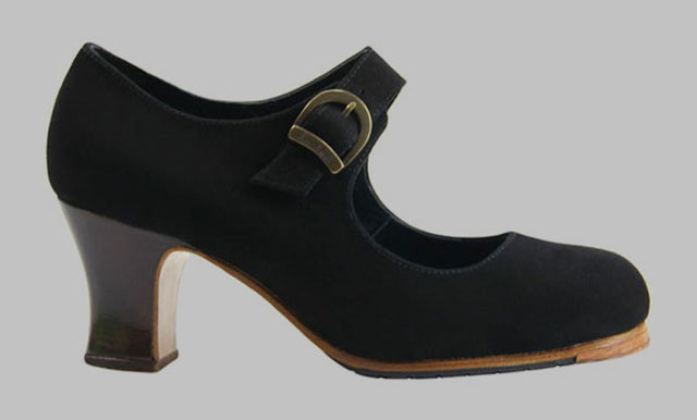 Zapato de baile flamenco profesional ante negro con hebilla. LA LUPI.