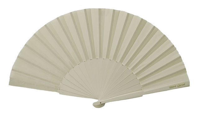 Abanico de color marfil, fabricado en madera y tela con estilo pericón de 30-31 cm. aproximadamente.
