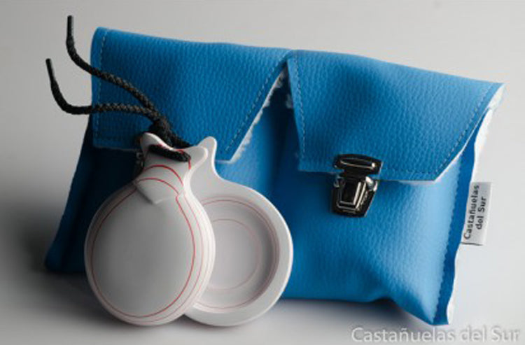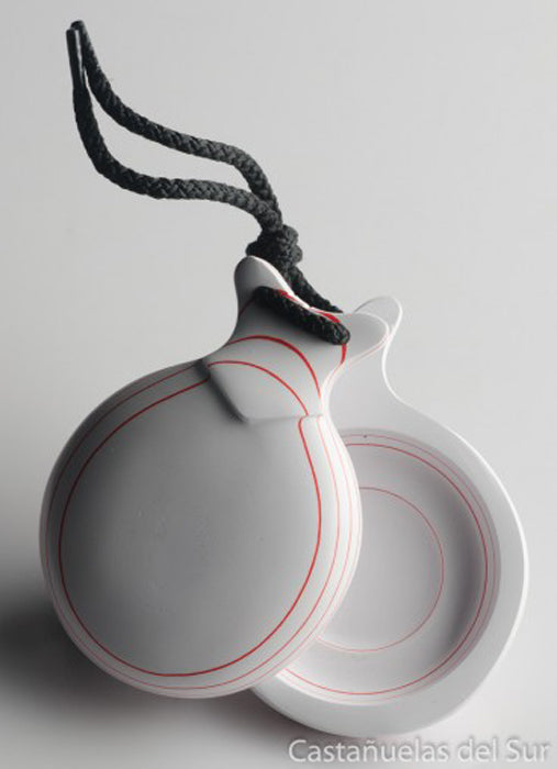 Castañuela capricho blanco veteado rojo con caja doble. CASTAÑUELAS DEL SUR.