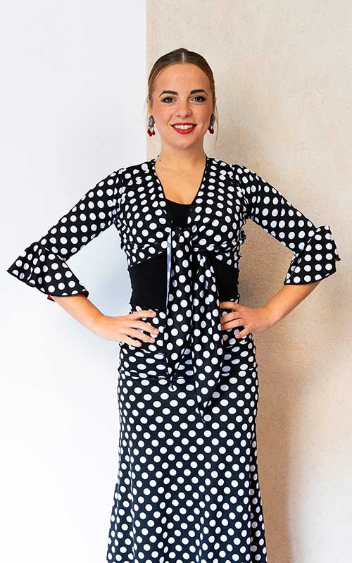 Cárdigan flamenco de punto elástico negro con lunares blancos